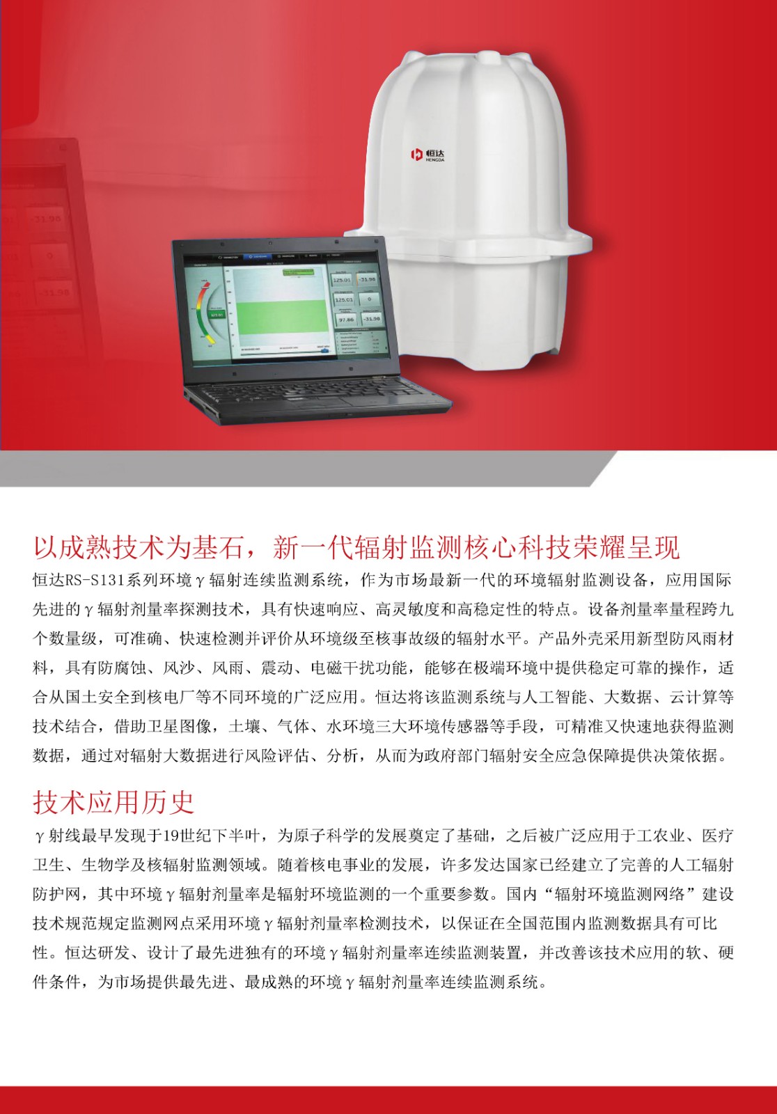 本產(chǎn)品為新一代的環(huán)境輻射監(jiān)測設(shè)備,在低劑量水平伽馬輻射的探測和測量方面提供了更加卓越的技術(shù)與表現(xiàn)。本產(chǎn)品繼續(xù)沿用前代產(chǎn)品的環(huán)境γ輻射劑量率監(jiān)測技術(shù),但在以下多個關(guān)鍵領(lǐng)域進(jìn)行了改進(jìn):靈敏性、可靠性、穩(wěn)定性。本產(chǎn)品采用新型防風(fēng)雨外殼,電子器件和診斷原件都進(jìn)行了更新,能夠在極端環(huán)境中提供穩(wěn)定可靠的操作,非常適合從國土安全到核電廠的各種廣泛應(yīng)用。